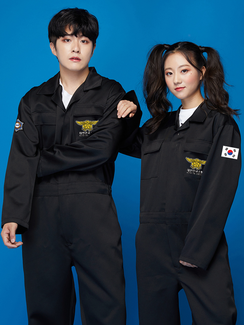 검정 점프수트 (긴긴) (BT-163) (왼가슴, 왼소매, 오른소매, 등전면 인쇄)