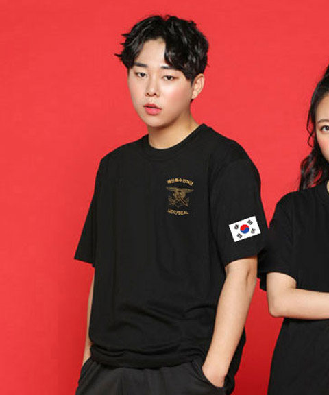 라운드 티셔츠 블랙 (왼가슴, 왼소매, 등 인쇄)