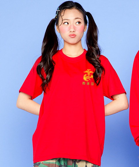 베이직 라운드 티셔츠 레드 (왼가슴, 소매, 등해병대 인쇄)