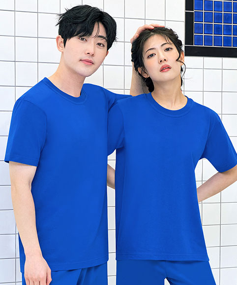 베이직 라운드 티셔츠 블루 (앞전면 인쇄)